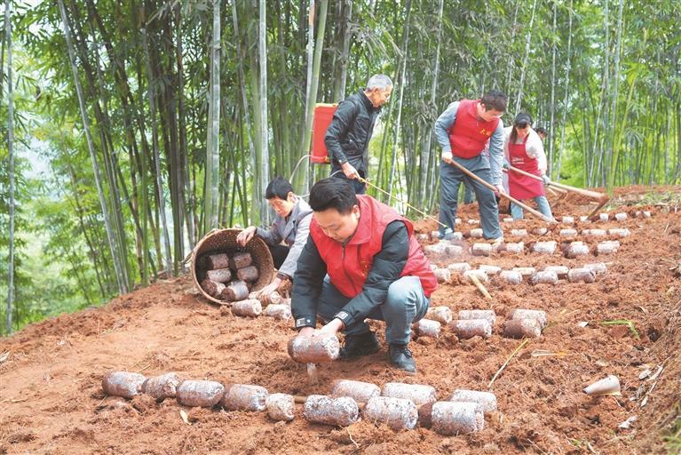 11月21日,赤水市大同镇党员农技干部在华平村协助农户栽种红托竹荪。当地充沛的使用林下土地资源,遴派党员农技干部经过“线上技能教导+线下田间辅佐”办法,带动农户展开特征食用菌培养,助大众稳产增收。 张鹏 摄(印象贵州)